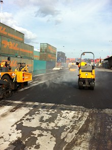 We are able to fully advise and carry out new or repair works for damaged areas of existing yards such as potholes, tree root damage, truck or forklift damage, cracked or failed areas, drainage problems or resurfacing of aged asphalt surfaces. Line marking, signage, speed hump construction and any associated concrete works are also services we offer.
